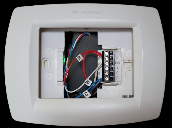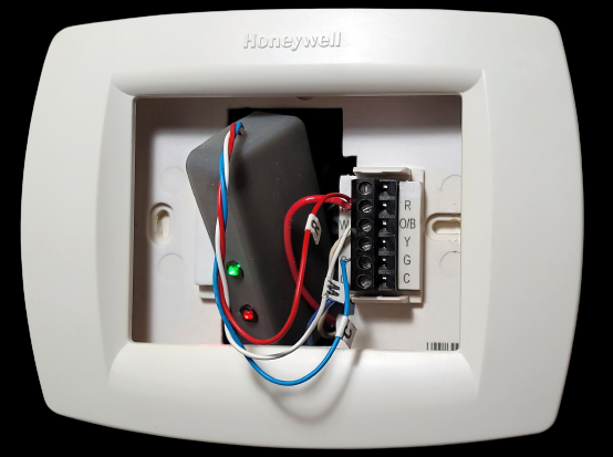 The interface to the thermostat is really simple. Three wires marked R(Red), W(White) and C(Common) are to be connected to the corresponding R, W and C terminals on your existing thermostat. That's it!