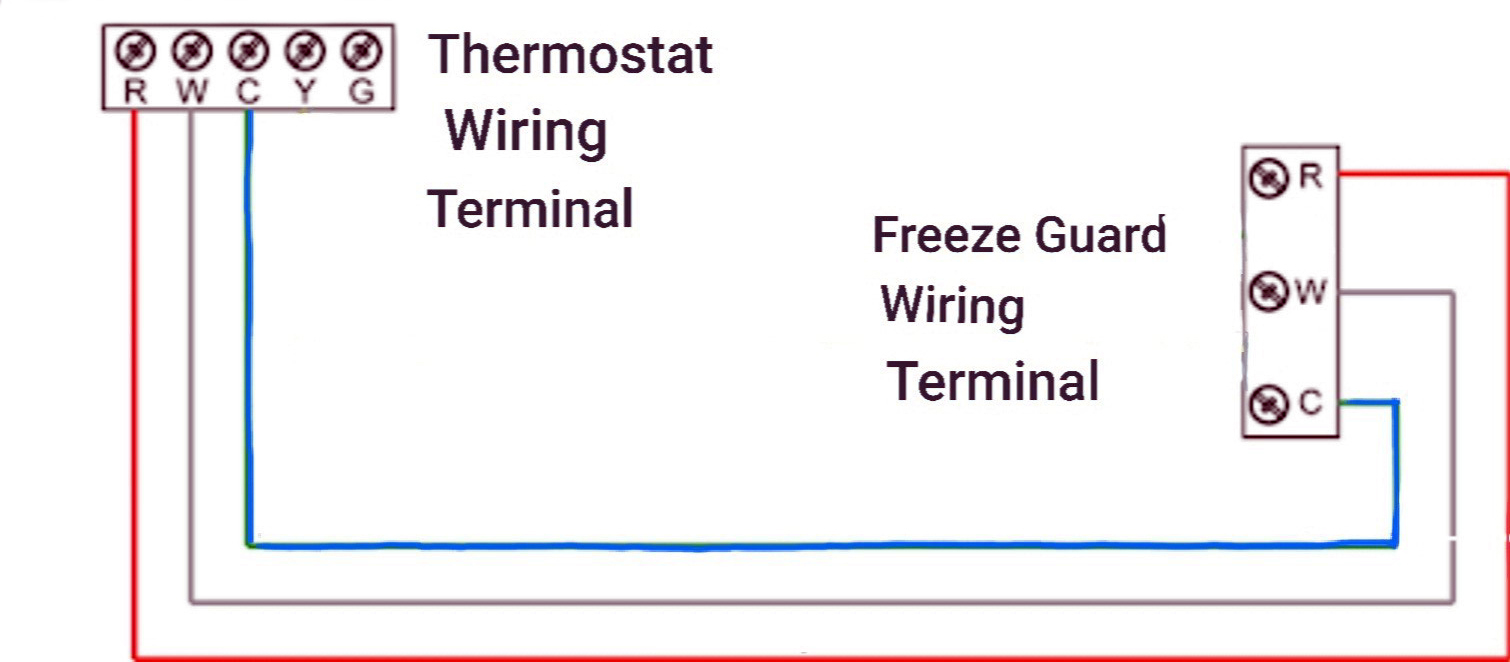 The following pictures show Freeze Guard electrical connection and actual installation behind your home thermostat.